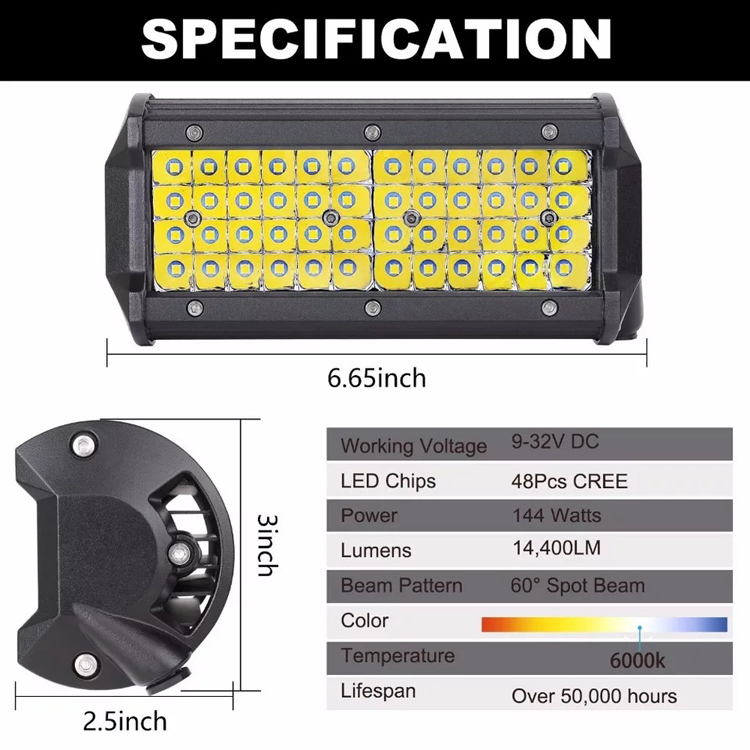 • 4 row light bar ip67 spot beam 7inch 144w led 4x4 led light bar
