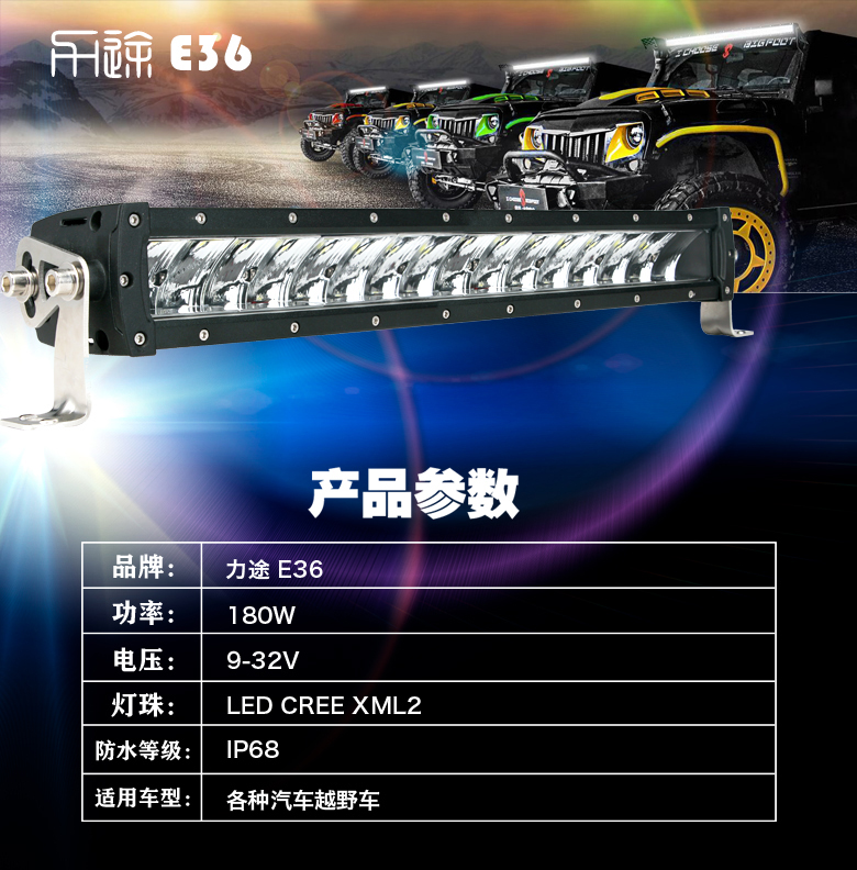 180W 20.5英寸汽车照明工作灯-聚光/泛光/越野led灯条