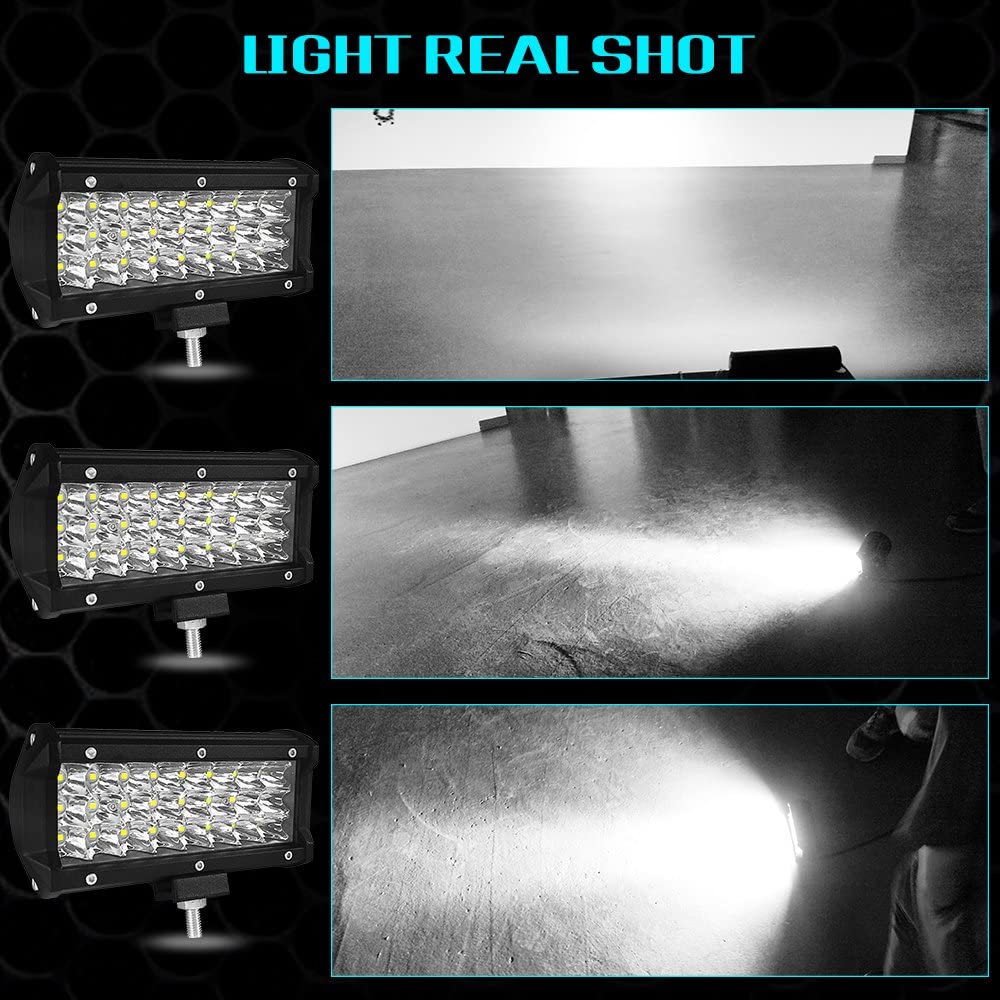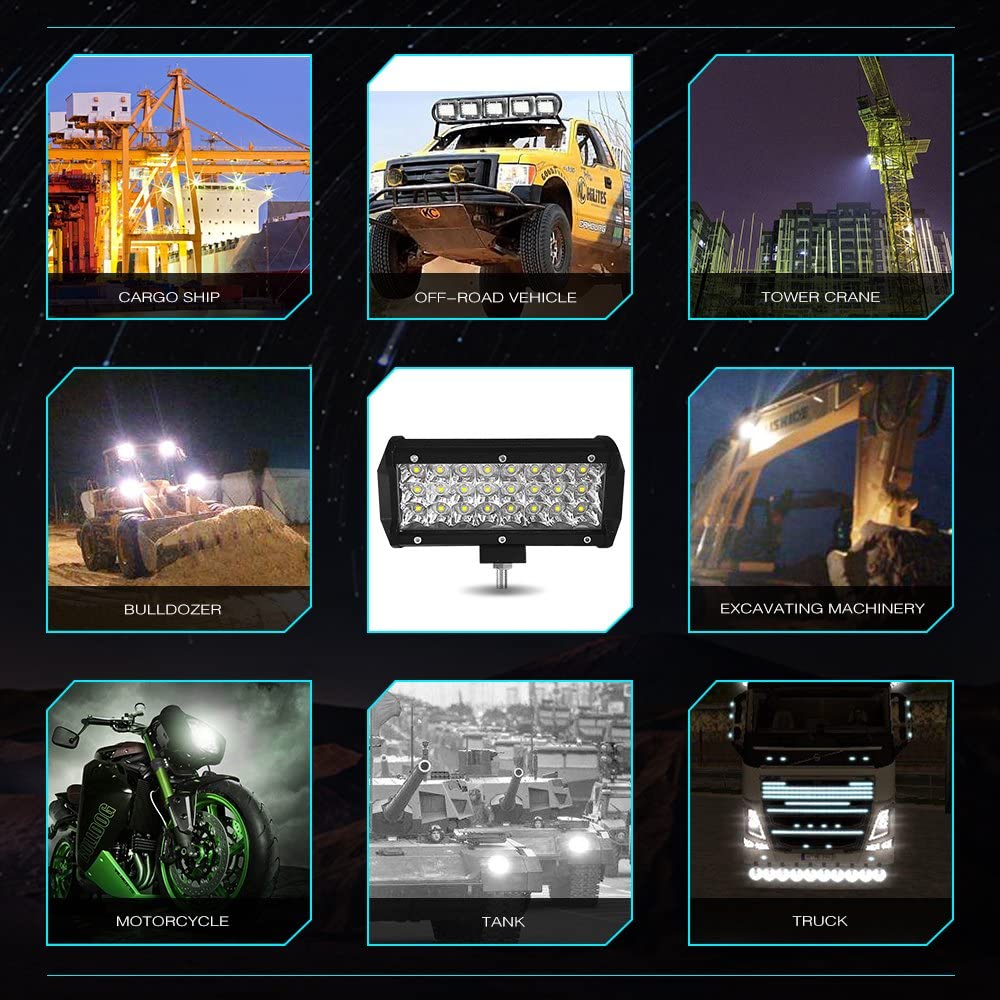 2020 LITU三排LED方形工作灯72W辅助灯7英寸长条灯,用于越野/船用/摩托车/ATV