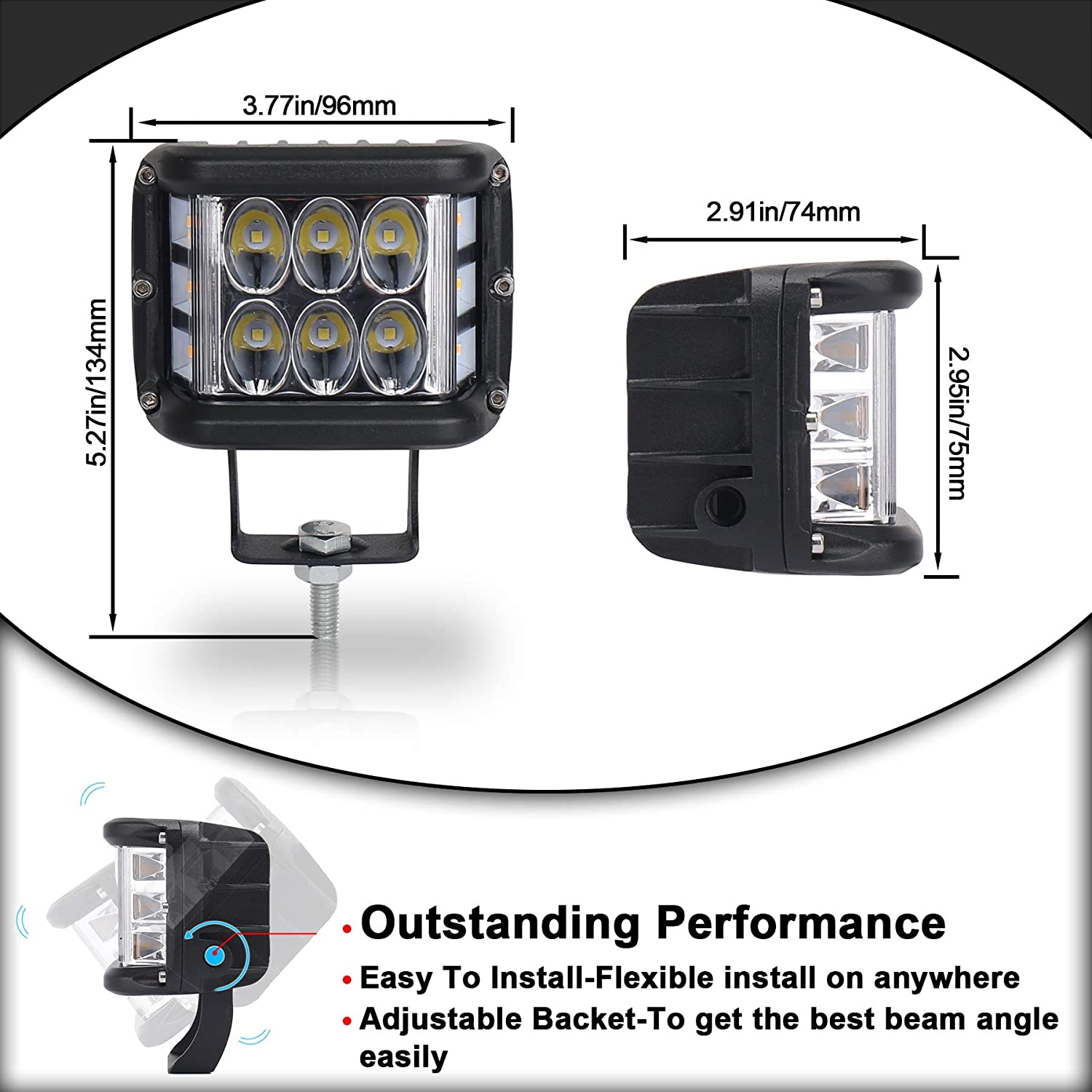 LITU 4英寸36W侧面爆闪LED工作灯灯,适用于越野车、卡车、拖拉机、摩托车