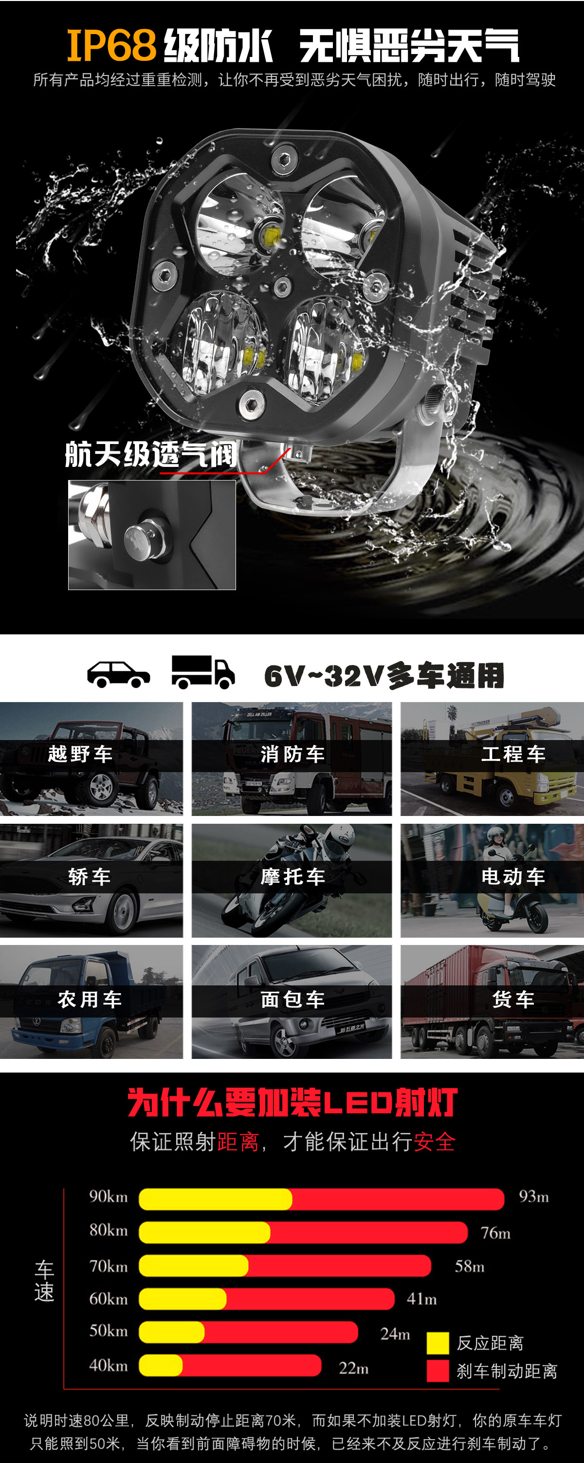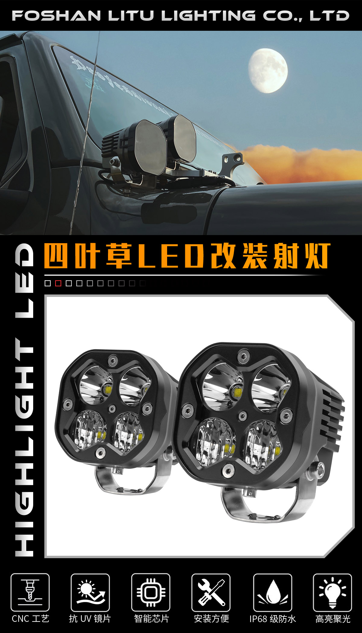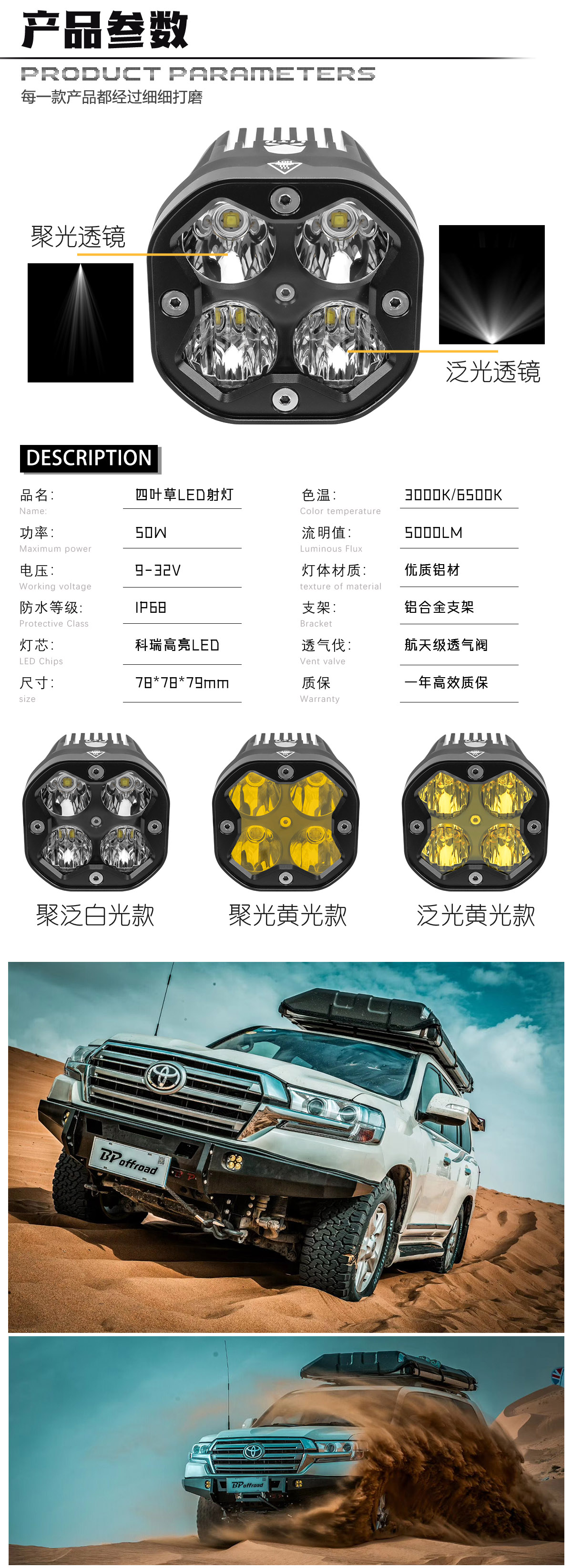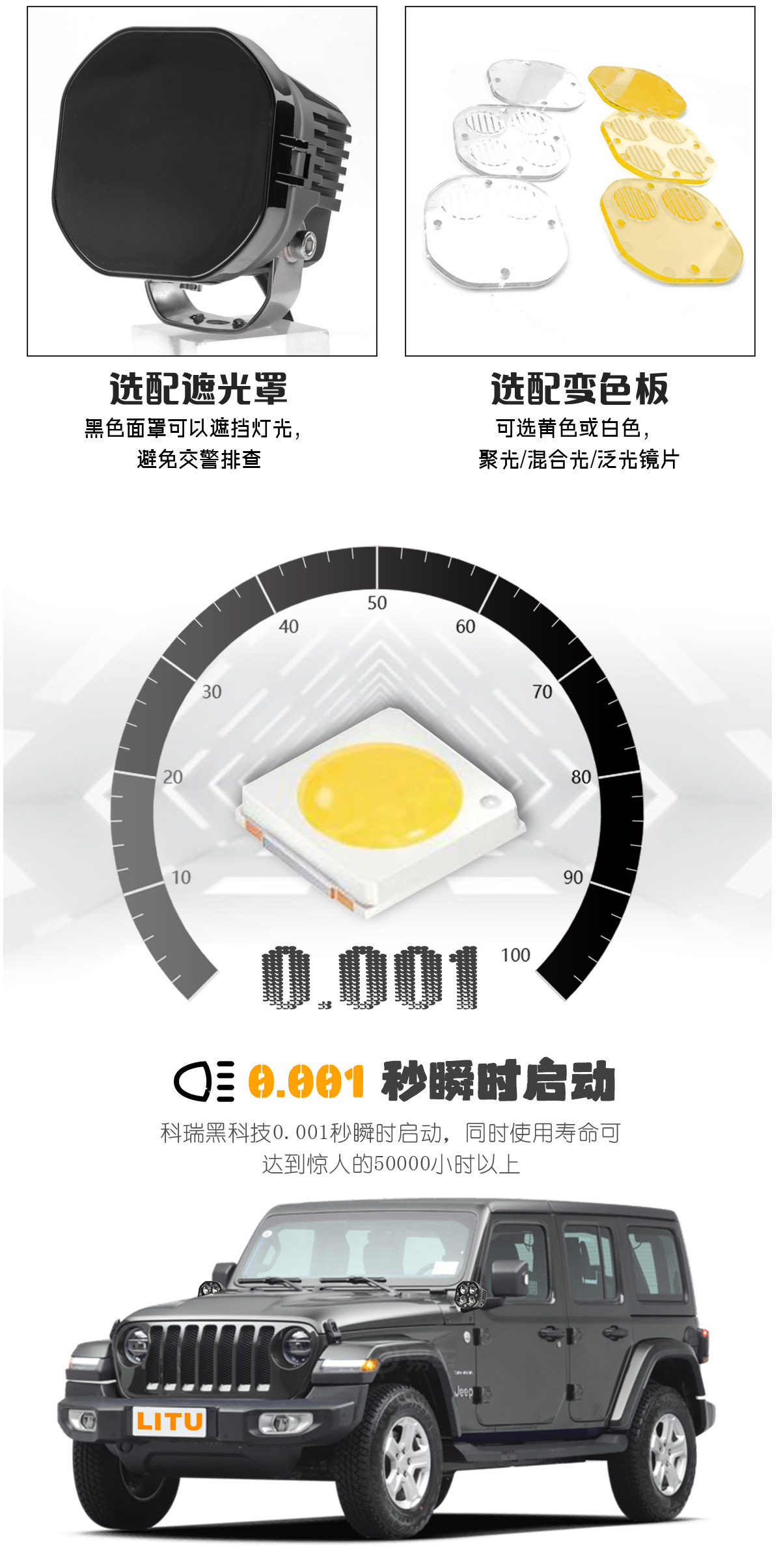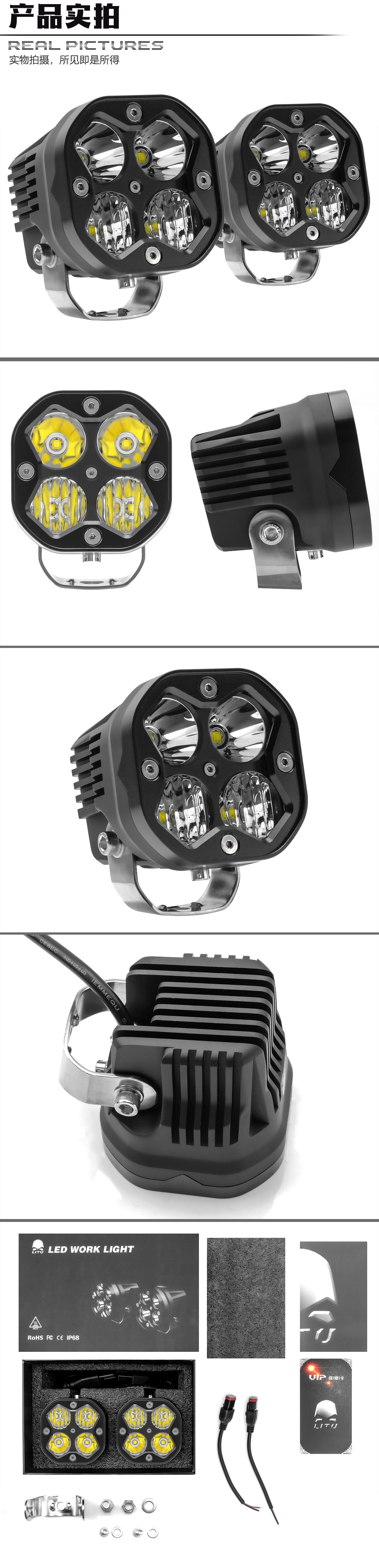 LITU的LT-103雾灯工作灯配有坚韧的铝盖、防碎PC镜片,保护套经久耐用,可承受任何极端使用状况。